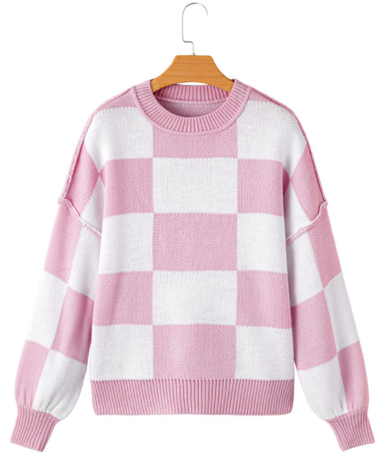 Pink Checkered Sleeve Sweater